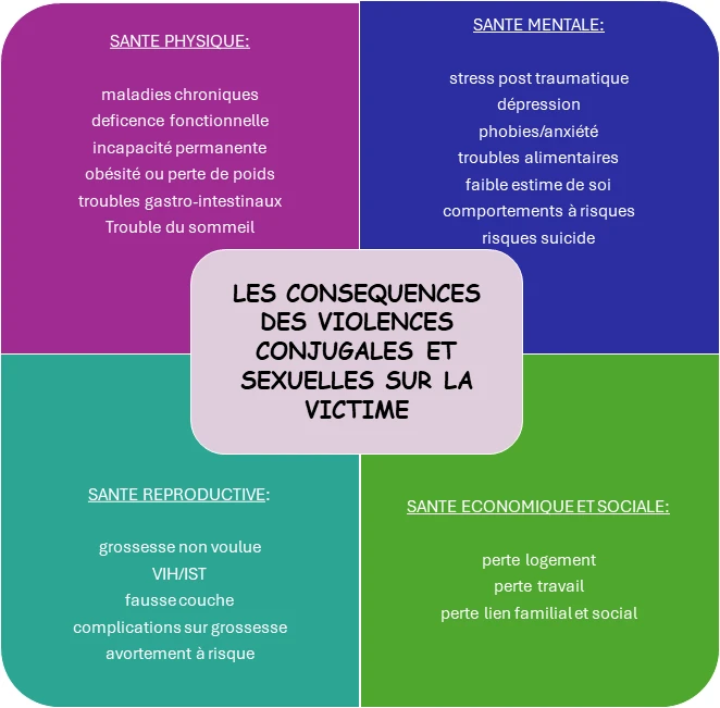 Les violences conjugales ont des conséquences profondes et durables sur les victimes, tant sur le plan psychologique que social. Les enfants également témoins directs, exposés à ces violences, sont reconnus comme des victimes à part entière, même lorsqu’ils ne sont pas directement visés.